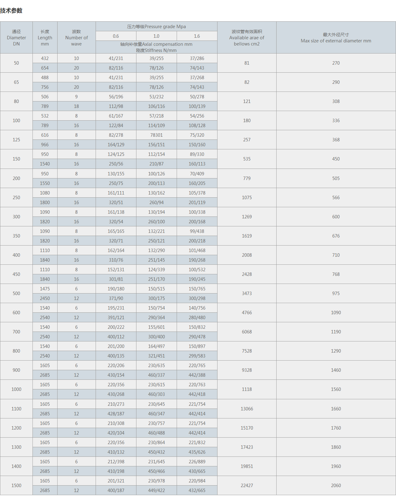 軸向補(bǔ)償量Axial compensation mm 剛度Stiffness N/mm |